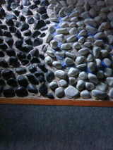 席の足元は、足つぼを押す石の床。